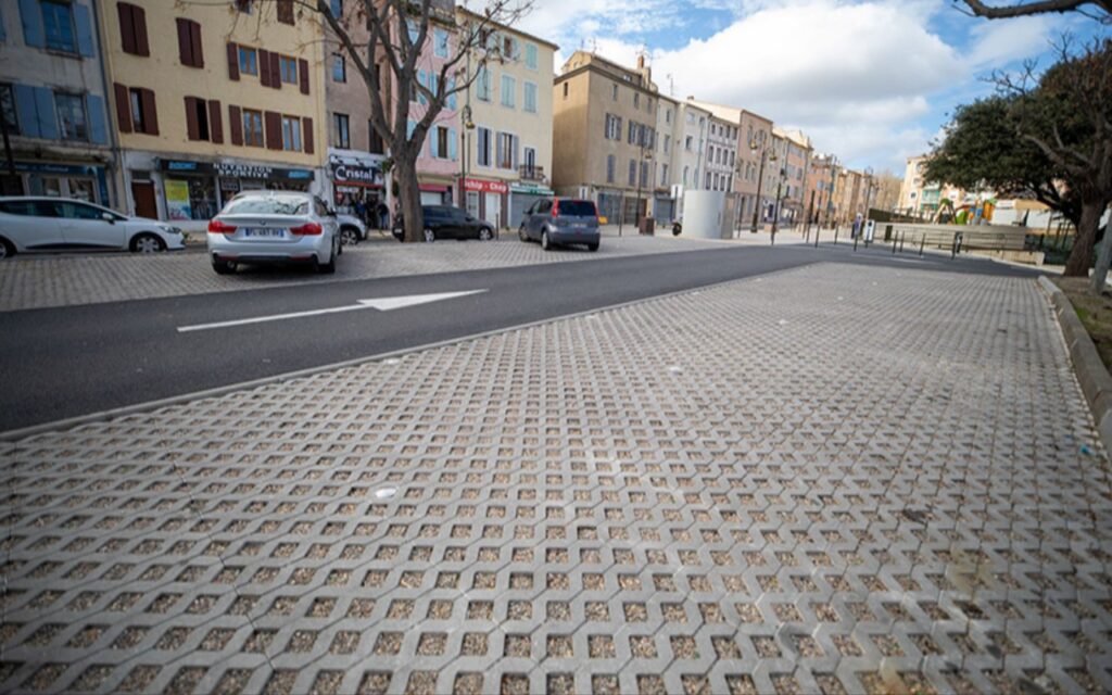 Afin de lutter contre les inondations et la sécheresse, tout en embellissant la ville, Narbonne a réaménagé deux de ses parkings. Le sol est rendu plus perméable pour favoriser l’infiltration des eaux pluviales et recharger les nappes phréatiques.